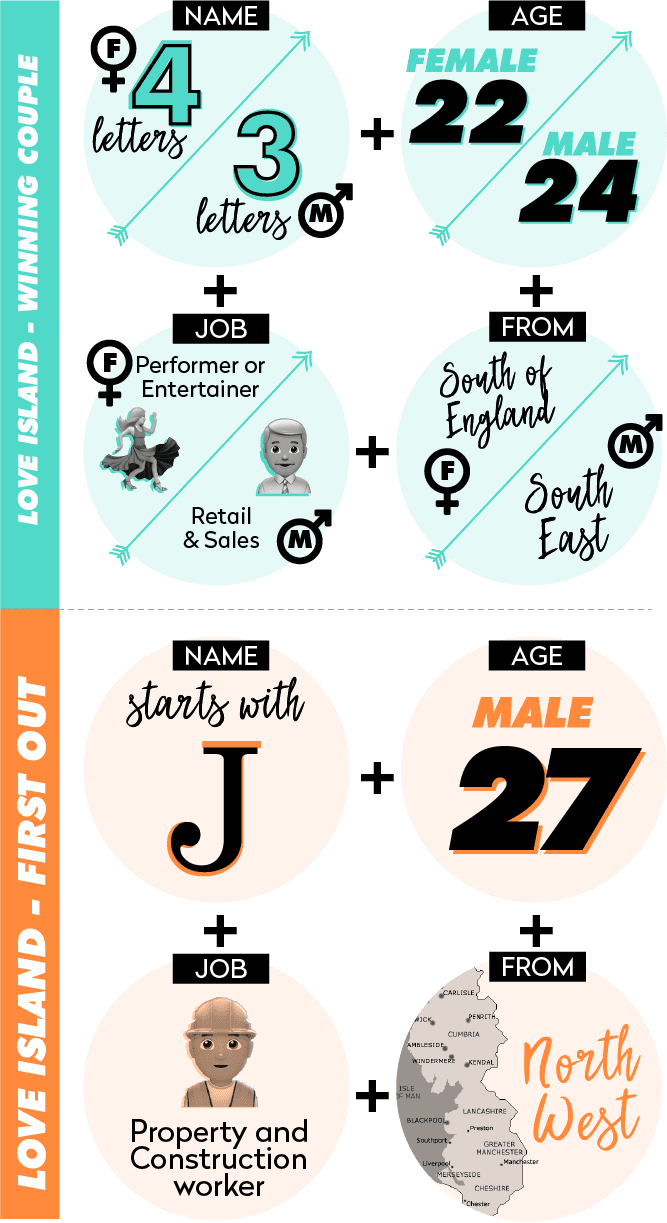 To do this we’ve analysed over 75 series of UK reality TV from over the last 18 years to see if your name, age, profession and where you’re from can help play a part in winning...or losing.